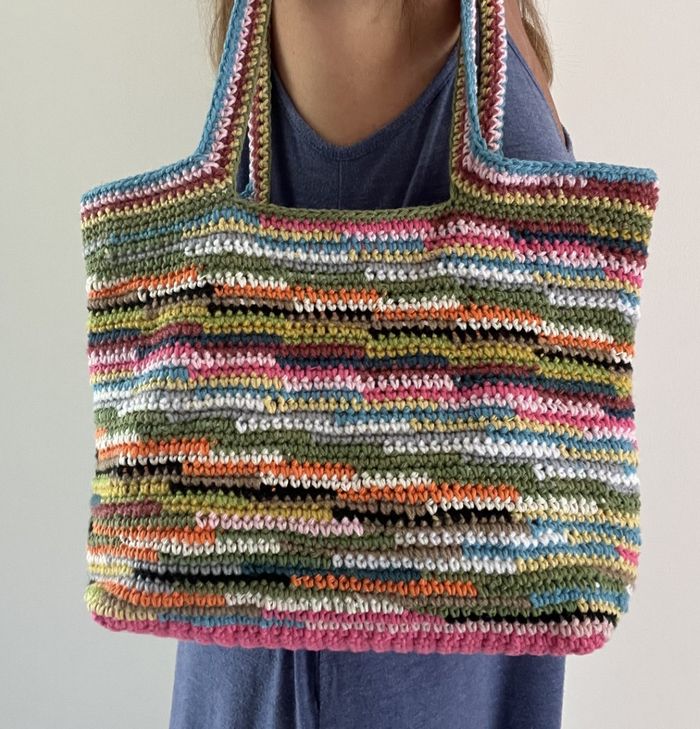 sac cabas, sac fourre tout, sac à main au crochet multicolore, sac totebag, crochet fait