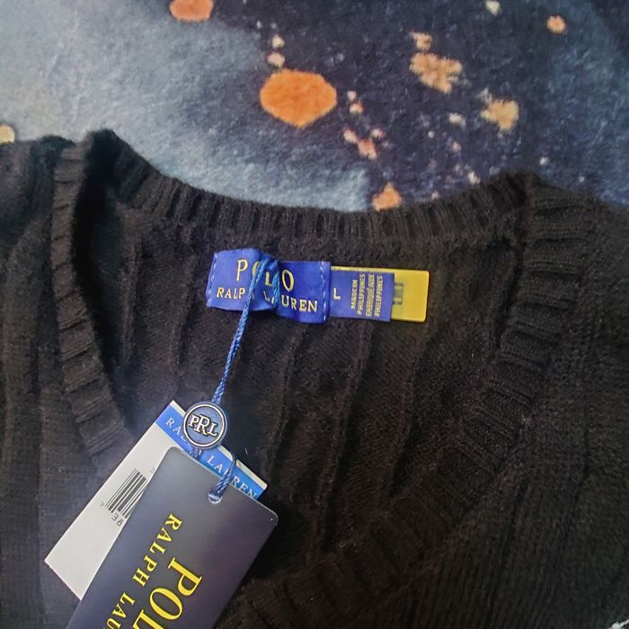 Pull POLO RALPH LAUREN pour femme, modèle col V en maille torsadée, style élégant et intemporel.  État : Neuf avec étiquettes  Marque : Polo Ralph Lauren  Taille : L (femme)  Couleur : Noir  Coupe : Classique  Col : V  Matière : Maille douce et confortable  Logo : Broderie poitrine  Fabrication : Made in Europe (voir étiquette) Pull idéal pour un look chic, casual ou quotidien. Peut se porter seul ou avec une chemise/blouse en dessous.  Mesures (à plat) : Les mesures exactes sont visibles sur les photos afin d’éviter toute erreur de taille.  Envoi rapide et soigné  Disponible pour toute question avant achat