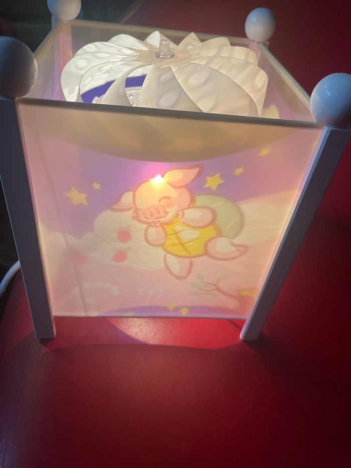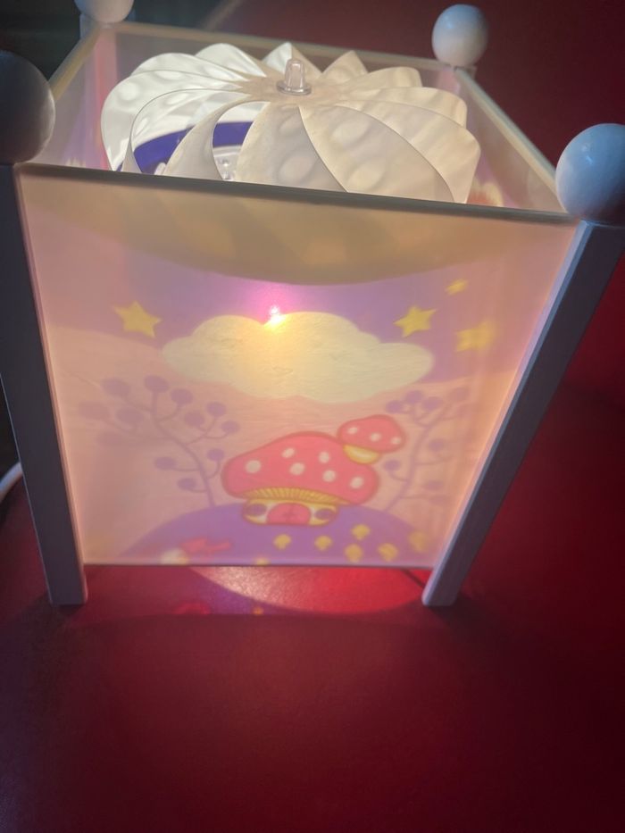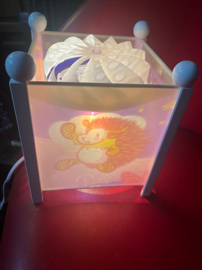 Je vends cette veilleuse lanterne magique à poser, avec un joli motif de lapin lumineux. - Type de produit : Lanterne magique - Décoration : Lampe à poser - Éclairage : Intérieur Très bon état Avec son carton d’origine