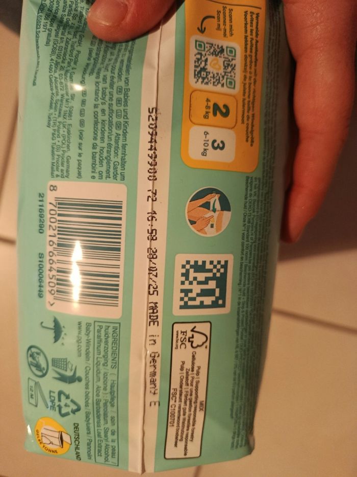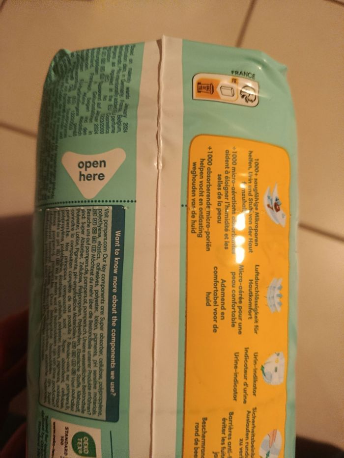 PampersNeuf, avec étiquette