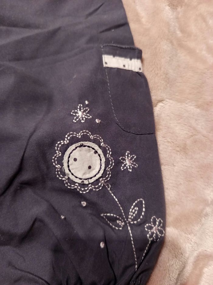 Pantalon chaud violet, taille et bas des jambes élastiqués, très bon état, en polyester et coton.