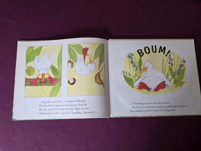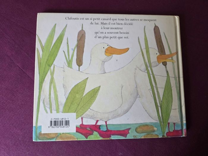 Clafoutis est un si petit canard que tout les autres se moquent de lui. Mais il est bien décidé à leur montrer qu'on a souvent besoin d'un plus petit que soi. Le livre est toujours en très bon état malgré les années. 📦 Envois rapide et soigné.