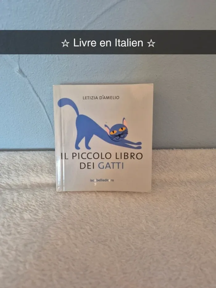 Mini livre Il Piccolo Libro Dei Gatti De l'auteur Letizia D'Amelio * D'occasion, couverture abîmée avec présence de traces d'empreinte / pression, dues à l'utilisation du livre comme support d'écriture. Pages jaunies ➺ Informations : . Mini livre de 10 cm x 9 cm . Éditions iac;belliedit.re . Livre en Italien