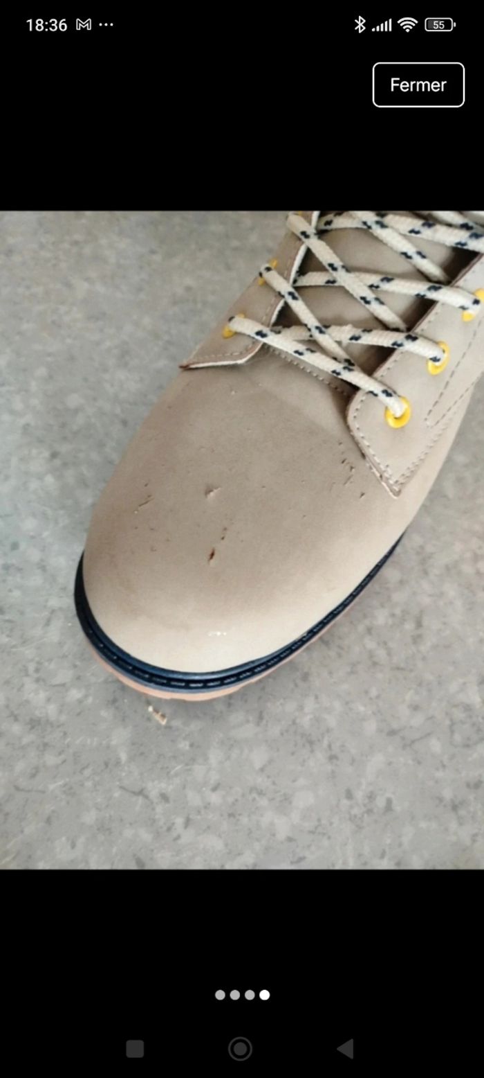 Vends chaussures Airness très peu portées mais avec un petit accros sur le dessus de la chaussure gauche (voir photo).Taille 40