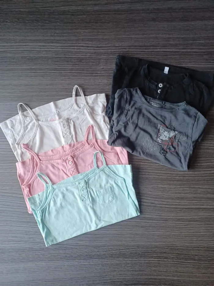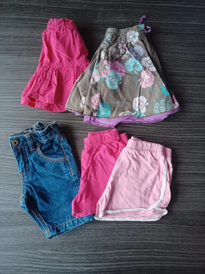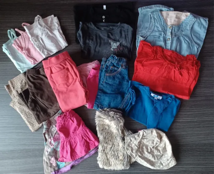 Lot vêtements fille 2 ans 2 t-shirts manches longues 3 débardeurs 2 jupes 1 short en jean 2 shorts 1 combishort 1 robe 1 pantalon (prévoir un point de couture à un bouton) 2 leggings 1 boléro 1 pull manches courtes 1 bob Marques variées : tex girls, la Redoute, sergent Major etc Tout en très bon état, pas de tâches, ni de trous