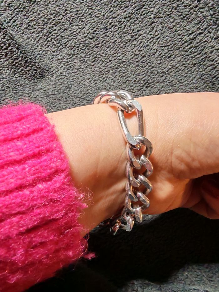 Bracelet argenté à gros maillons  - photo numéro 5