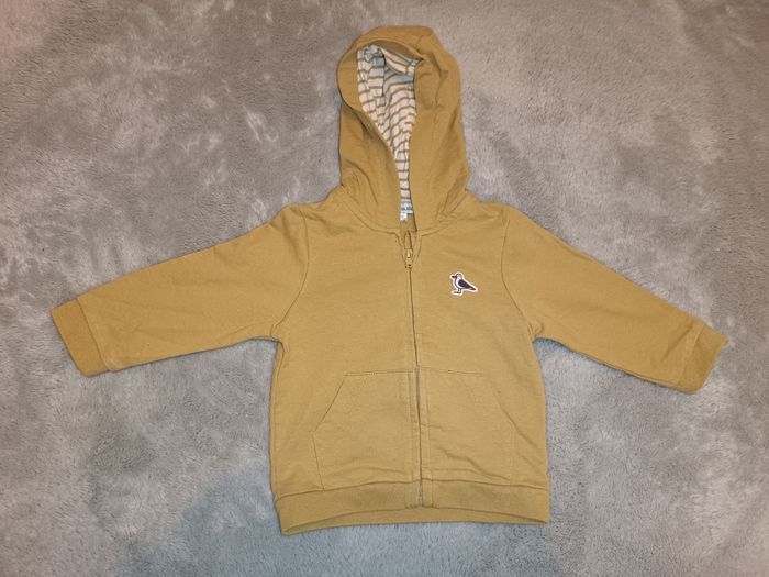 Jolie veste zippée à capuche pour bébé, confortable et idéale pour la mi-saison 🍂 Coloris tendance et intérieur rayé pour une touche originale. 📏 Taille : 12 mois 🏷️ Marque : Vertbaudet 🎨 Couleur : moutarde 👕 Détails : fermeture zippée, capuche, poches à l’avant, petit motif oiseau 📌 État : très bon état 👉 Envoi rapide 📦 👉 Articles soignés, prix tout doux 👉 Découvre aussi mon dressing