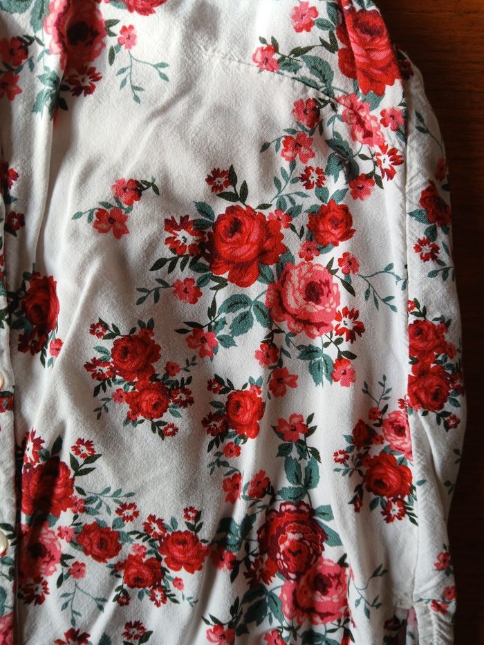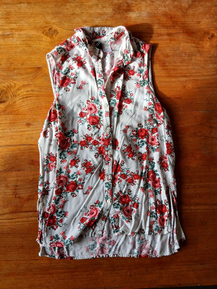 Chemisier sans manches blanches a motifs de roses rouges. Taille 32 Marque H&M Très bon état