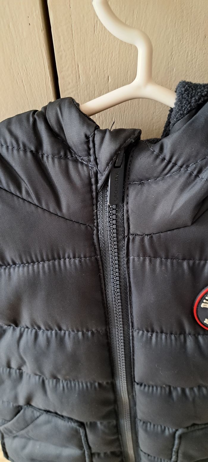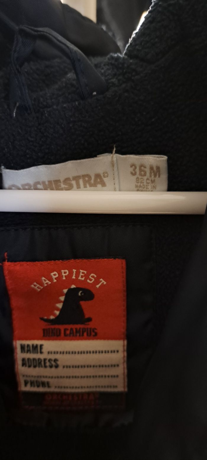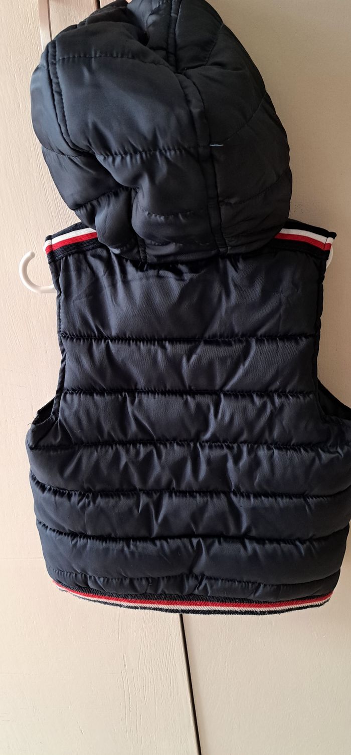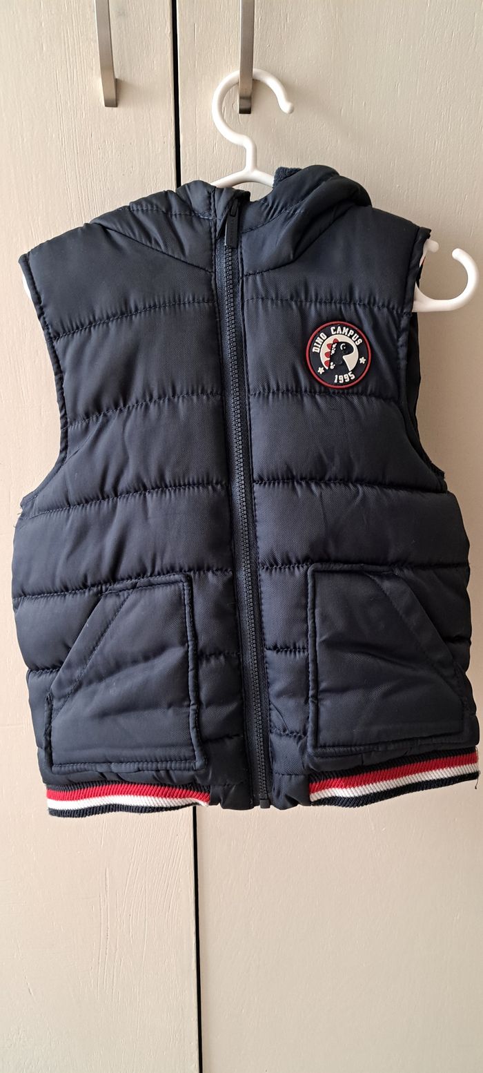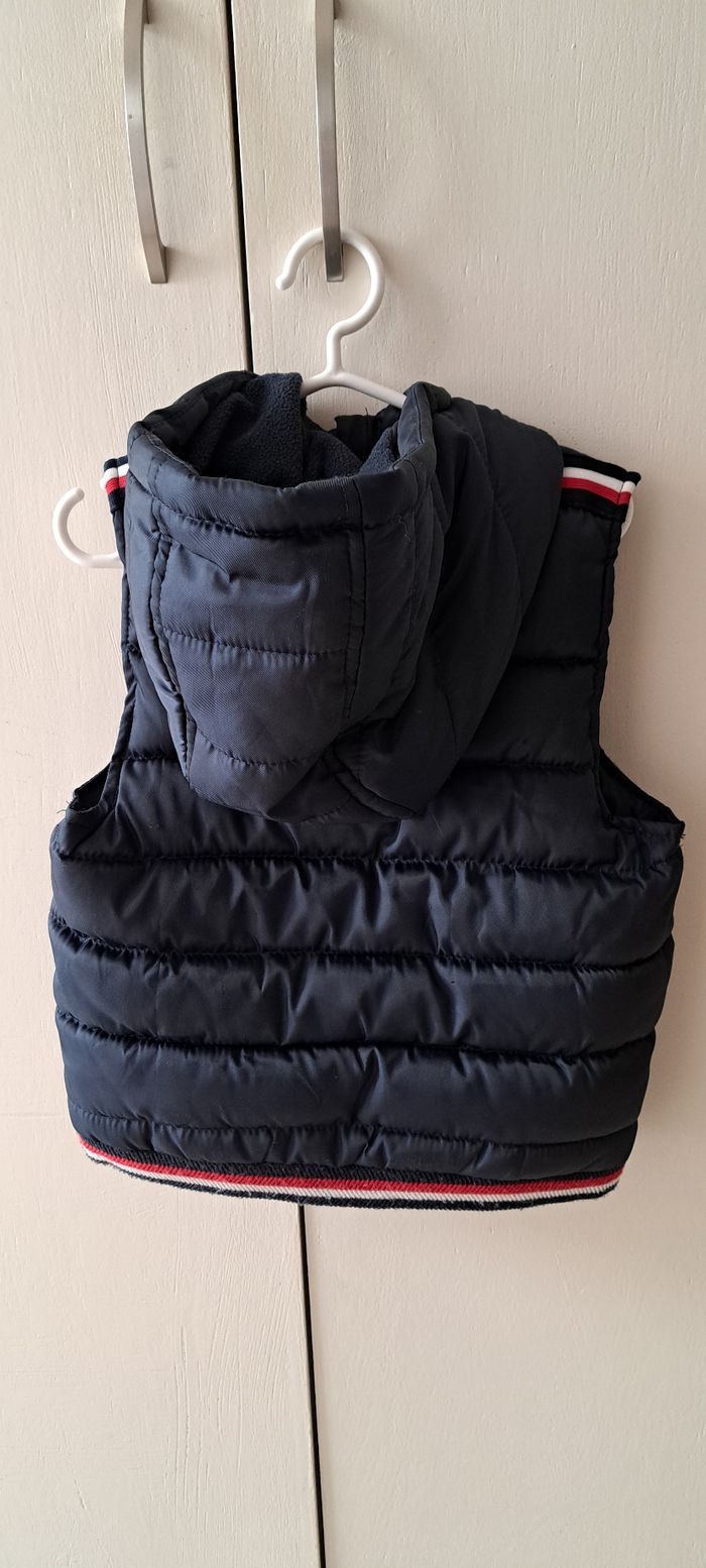 Veste sans manches, doublée en partie et avec capuche. Marque orchestra Taille 36 mois / 92 cms Couleur bleu marine Veste en très bon état, fermeture fonctionnelle.