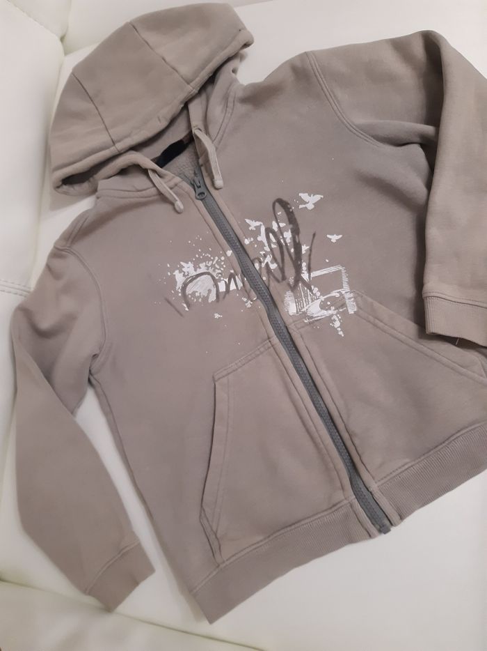 Gilet kaki avec capuche Fermeture zippée A été porté.