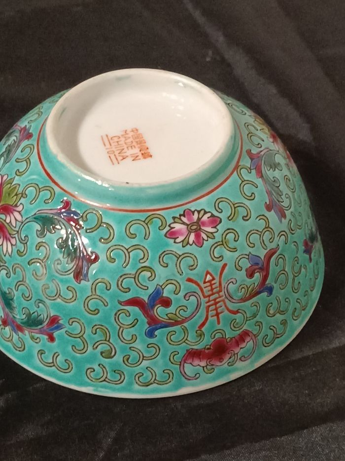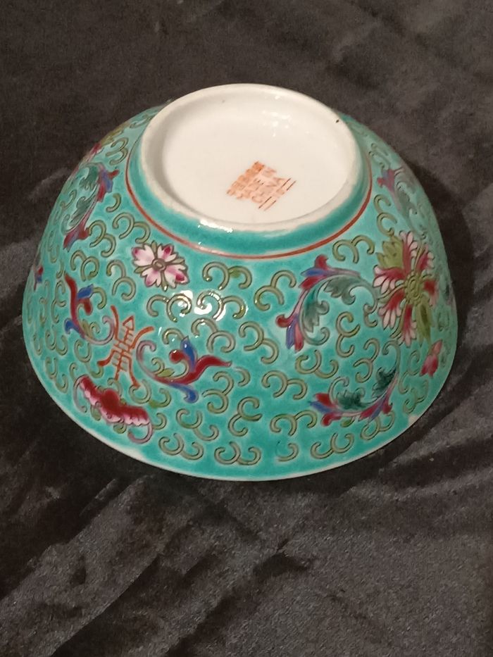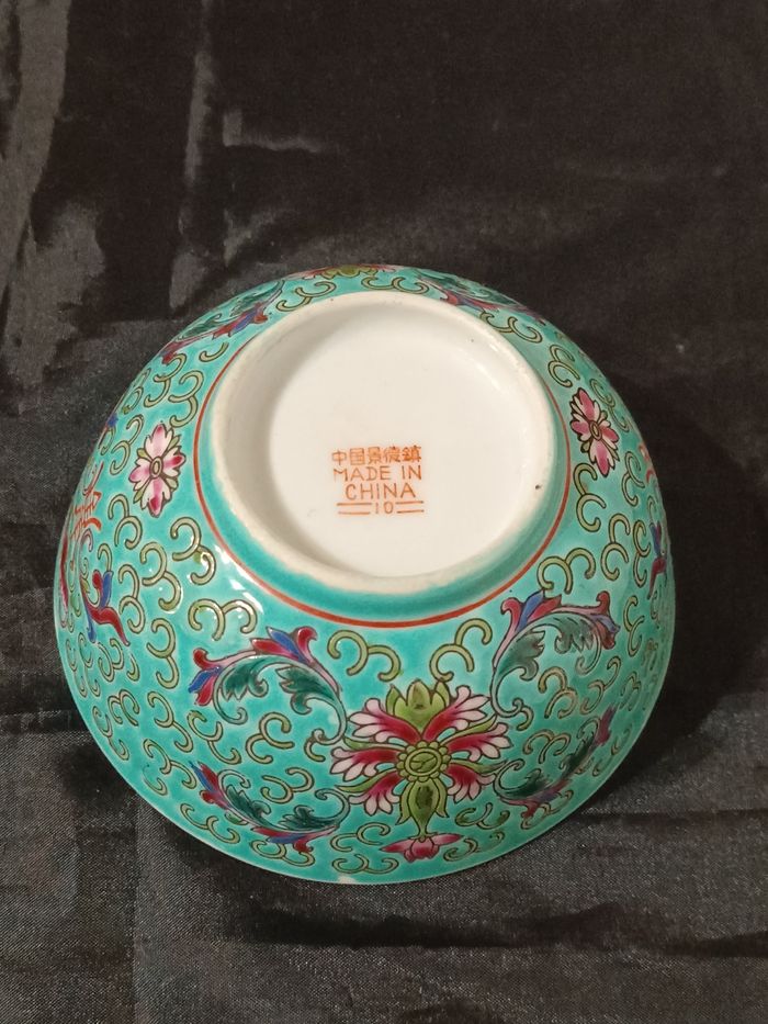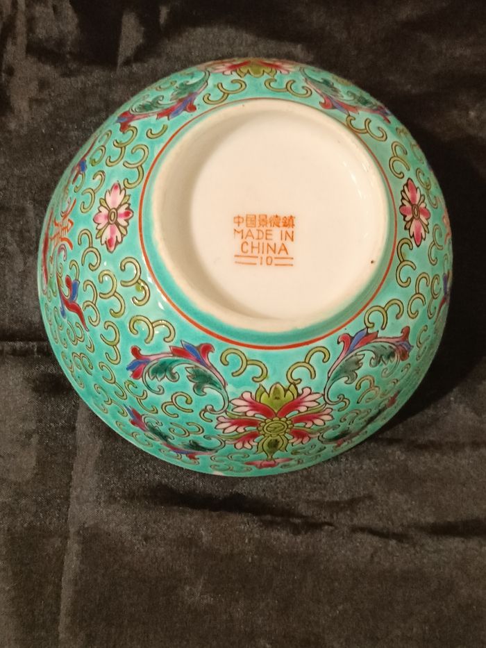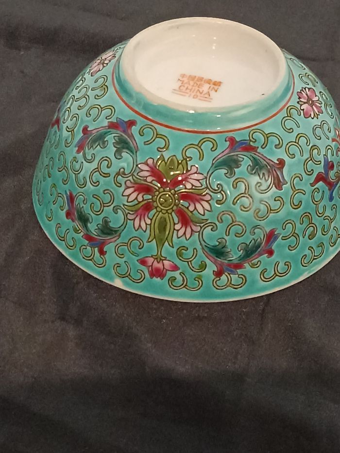 Bol chinois en porcelaine décor floral Lotus bon état cf photos hauteur 5,5 cm diamètre 11,5 cm