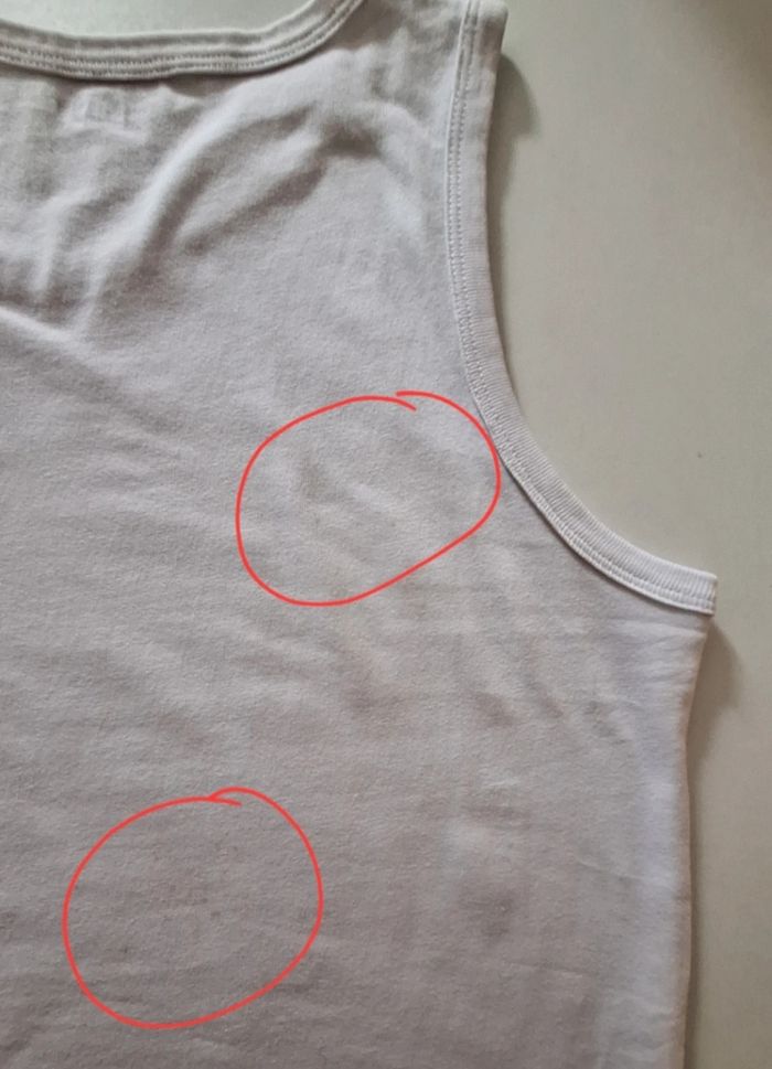 Débardeur blanc uni 100 % coton. Petites traces au dos.