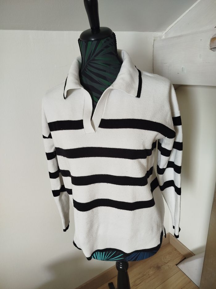 Pull col polo marinière Tissaia M 38 - photo numéro 4