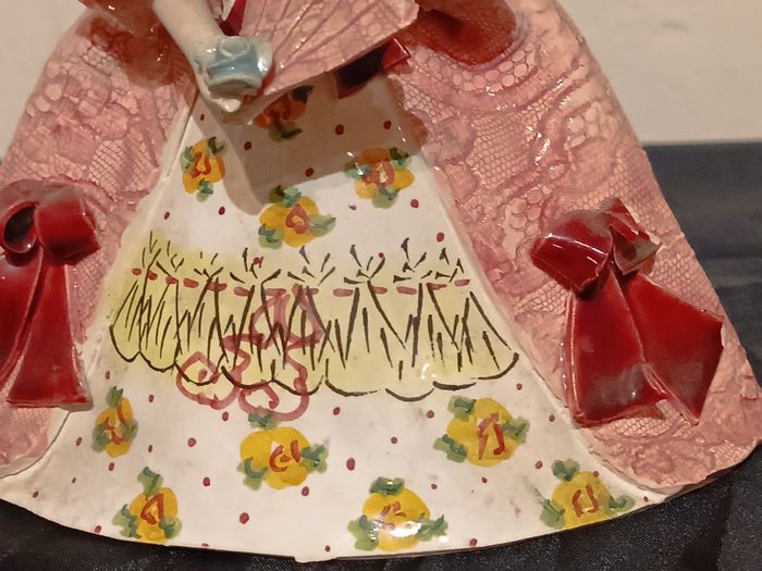 Femme galante en céramique fait main hauteur 18 cm (sans main) cf photos en état
