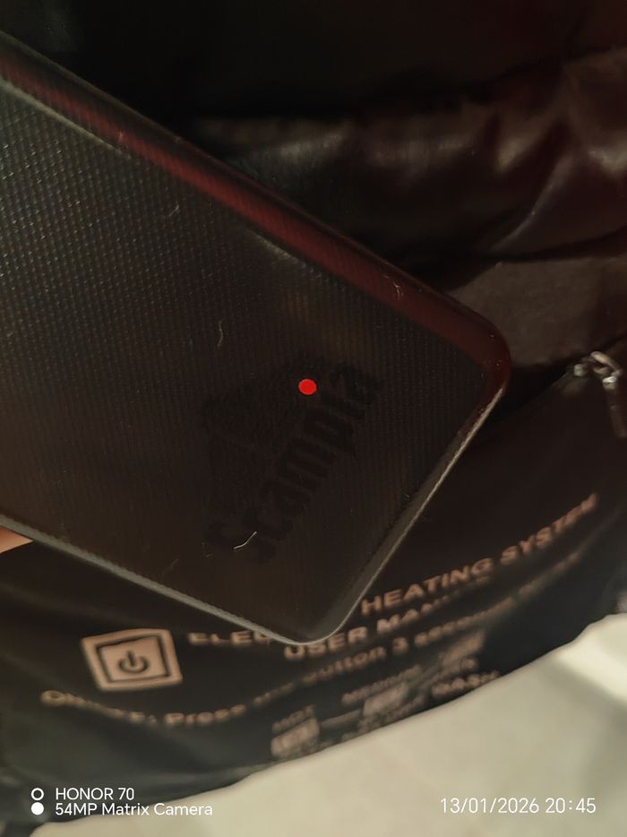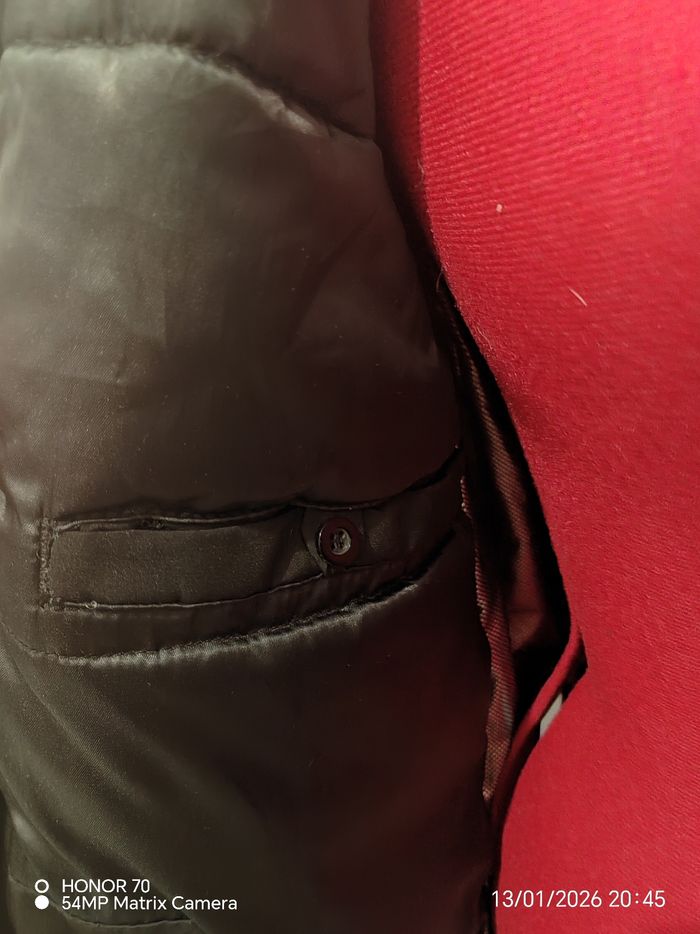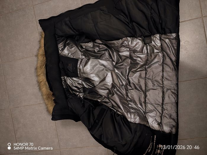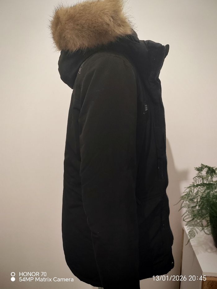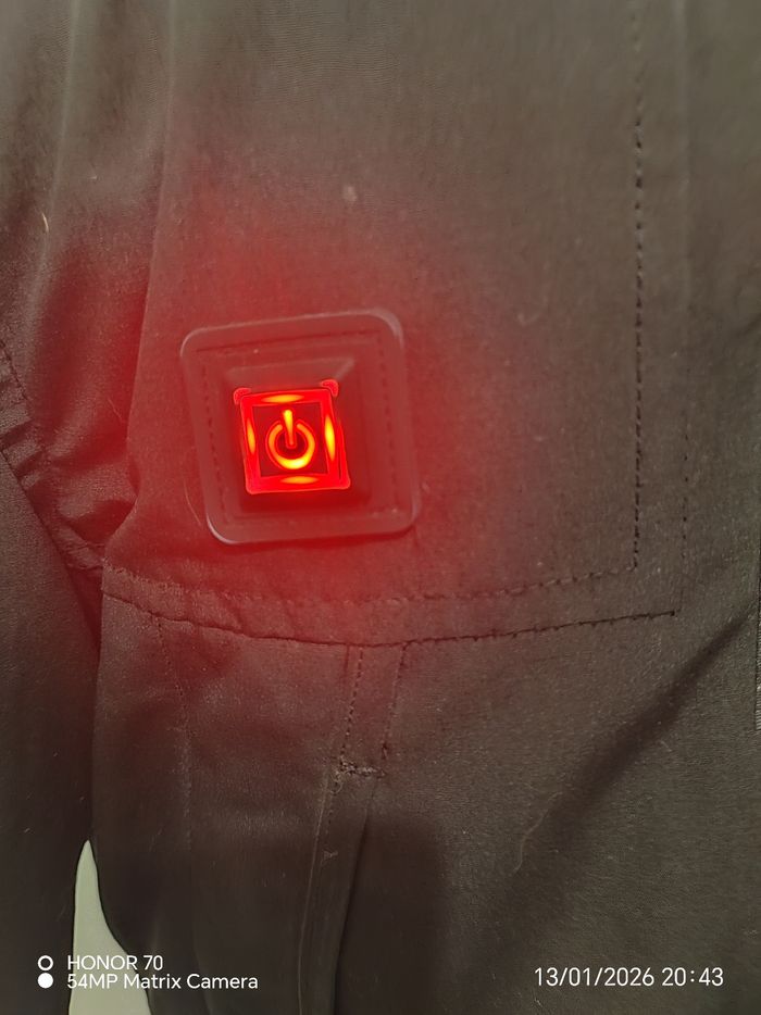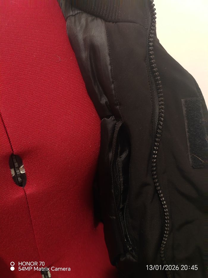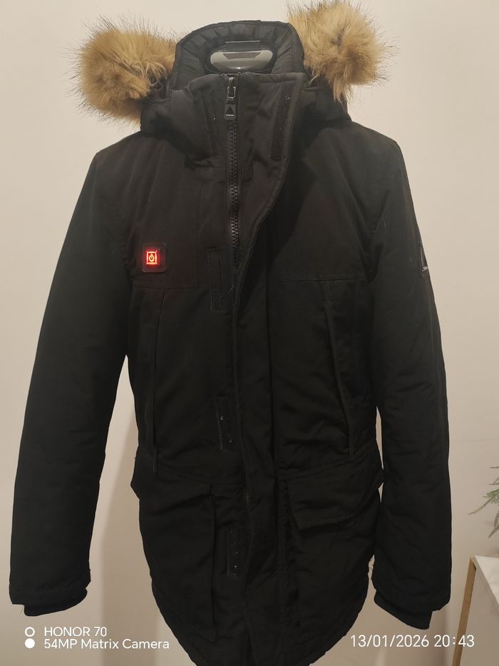 Peu portee Avec sa batterie portable fournie Poches inerieure des deux cotes. Ornement de capuche et capuche amovible Largeur a plat sous les aisselles 56 cm Longueur totale 75 cm Poches sur la poitrine et sur les côtés #geliscyrilletaille36 #geliscyrilletailleS Ref