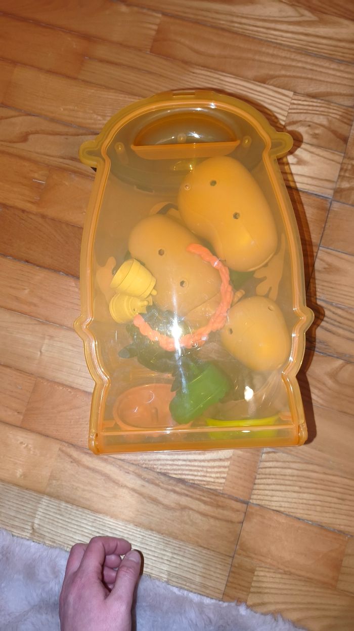 Prix neuf : 27 € CRÉER UNE FAMILLE POTATO HEAD AVEC UN BÉBÉ OU UN PETIT ANIMAL : Avec 42 pièces Potato Head à mélanger et à combiner, les enfants peuvent imaginer différents personnages, y compris un bébé ou un animal ! 3 CORPS DE PATATE : Une famille à fusionner ! Ce coffret Potato Head comprend 2 grands corps de patate et 1 petit corps de patate, ce qui permet aux enfants de créer 2 parents ainsi qu'un enfant ou un animal 42 PIÈCES POTATO HEAD : Ce coffret Potato Head comprend une boîte de rangement en forme de patate, 3 corps de patate et 38 accessoires Potato Head, dont des oreilles d'animal, des cheveux violets, un couronne fleurie et plus encore ! CRÉER ET COMBINER DES VISAGES RIGOLOS : Une oreille là où une bouche devrait se trouver ? Un bras à la place d'un nez ? Les enfants peuvent facilement réorganiser les pièces encore et encore GRANDE BOÎTE DE RANGEMENT : Tous les accessoires peuvent trouver leur place dans la grande boîte en forme de patate pour un rangement facile et pratique. Et le contenant est si adorable qu'il pourrait bien devenir un personnage du jeu