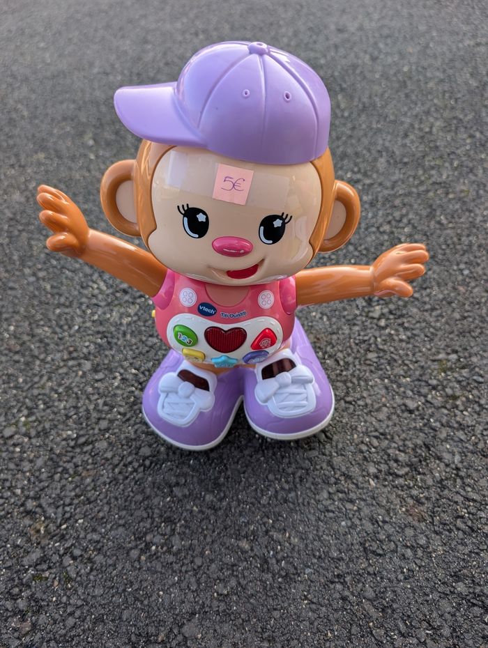 Bonjour vends, Titi Ouistiti est un jouet bébé dès 12 mois. Ce singe interactif amuse votre bébé en tournant sur lui-même et en avançant automatiquement, incitant ainsi bébé à le suivre. Véritable développeur de motricité et de langage pour bébé, Titi Ouistiti danse au rythme des mélodies et invite l’enfant à chanter avec lui Des détecteurs de mouvement sont installés à l’avant et à l’arrière de Titi Ouistiti, un singe interactif et intelligent, pour qu’il contourne les obstacles. 6 touches lumineuses sont présentes sur le corps de Titi Ouistiti, ce qui permettra à bébé d’apprendre les premiers chiffres, les premières couleurs et mélodies