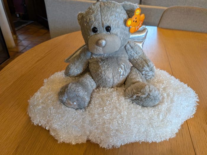 Peluche ours ange sur son coussin..neuf avec étiquette
