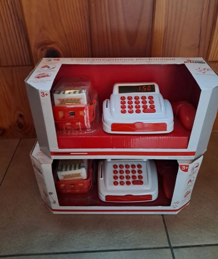 Caisses enregistreuses neuves les memes Dans emballage d origine jamais deballé Petit panier de course Piece de monnaie Fonctionne avec pile Sonore et lumineux Maison non fumeur, premiere main, pas d'animaux D'autres jouets sur #fabmass57100jouet