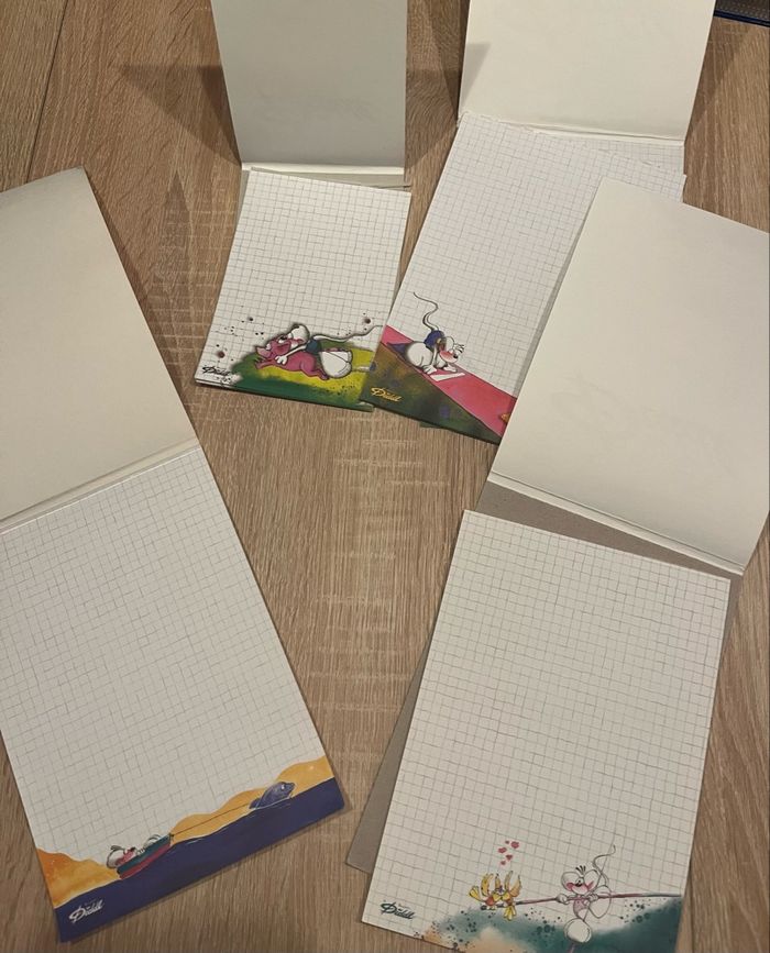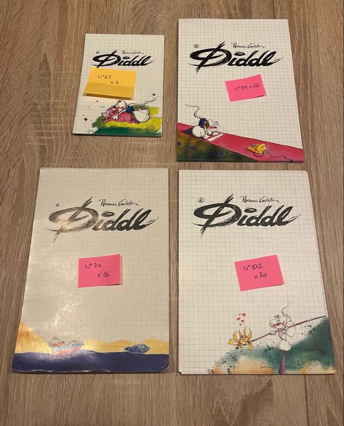 Lot de blocs Diddl A6 63 7 feuilles A5 89 26 feuilles A5 74 16 feuilles A5 172 20 feuilles Les feuilles qui sont détachées des blocs sont toutes ensemble