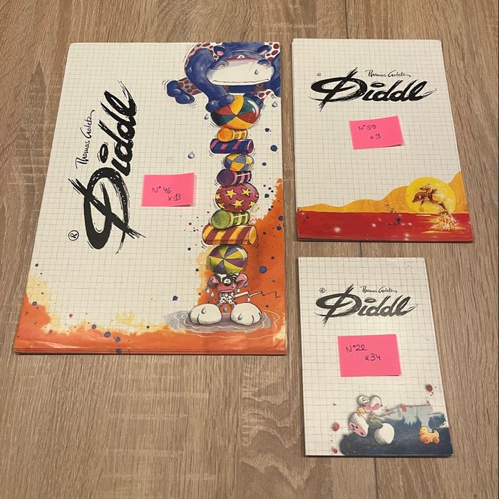 Lot de blocs Diddl A4 46 13 feuilles (4 détachées mais encore ensemble, les 9 autres attachées au bloc) A6 22 34 feuilles A5 59 9 feuilles