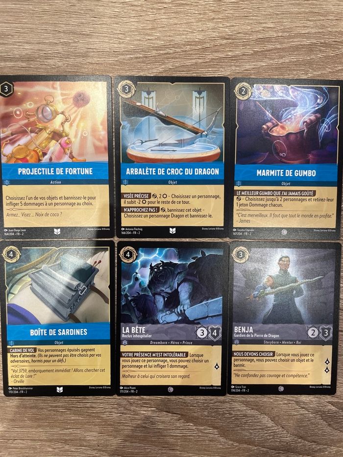 Lot de 47 cartes Lorcana du chapitre 2, neuves et en français. - aucune foil - aucun double - 29 communes - 16 unco - 2 rares N’hésitez pas si besoin d’autres photos