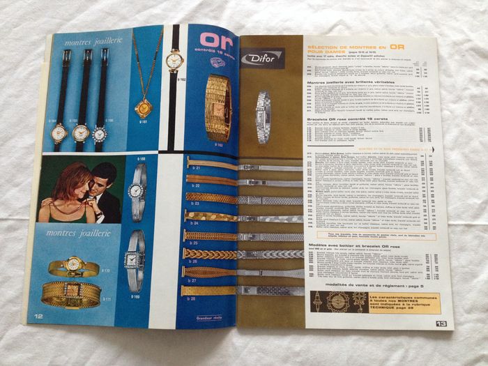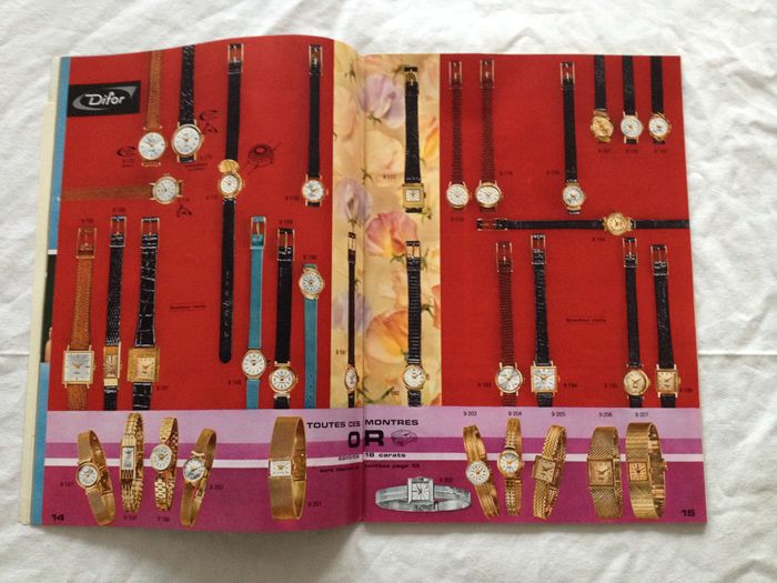 rare catalogue difor Sarda 1965. dans ce catalogue vous trouverez montre, reveil, pendule, bijoux, bibelot, couvert, radio. plus poinçon, tableau pierre, fil baguier. 71 pages avec feuille de présentation et pochette en papier d'origine. format: 32 sur 22 cm de hauteur. belle état de conservation, voir photos merci.