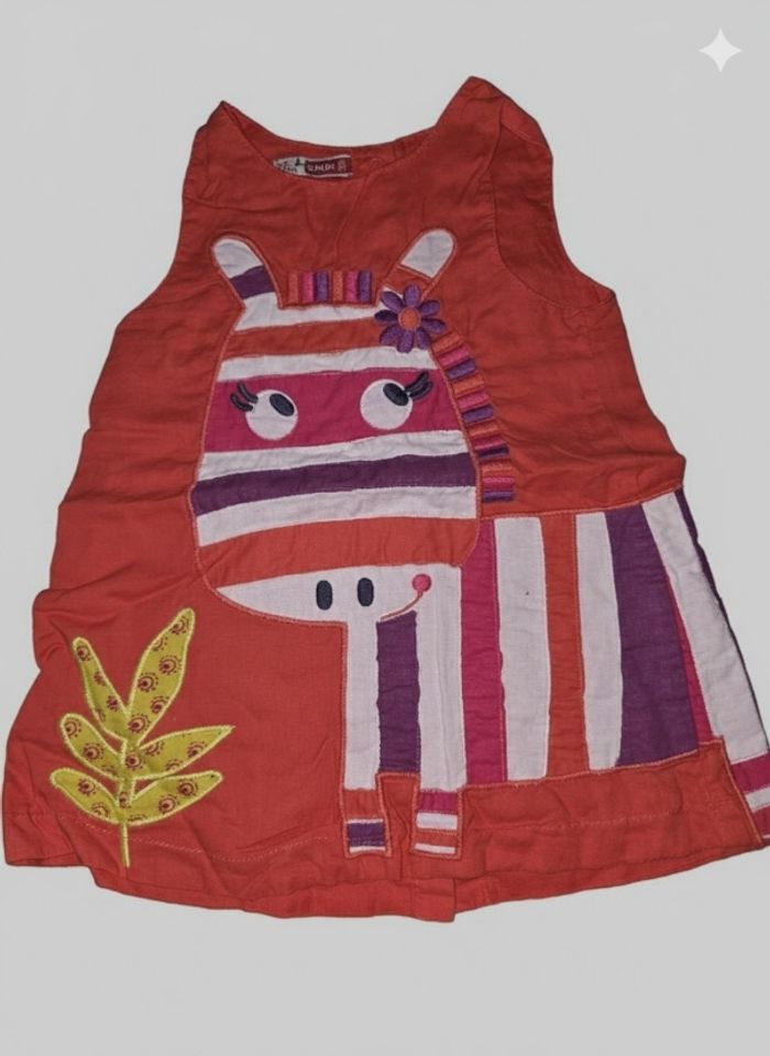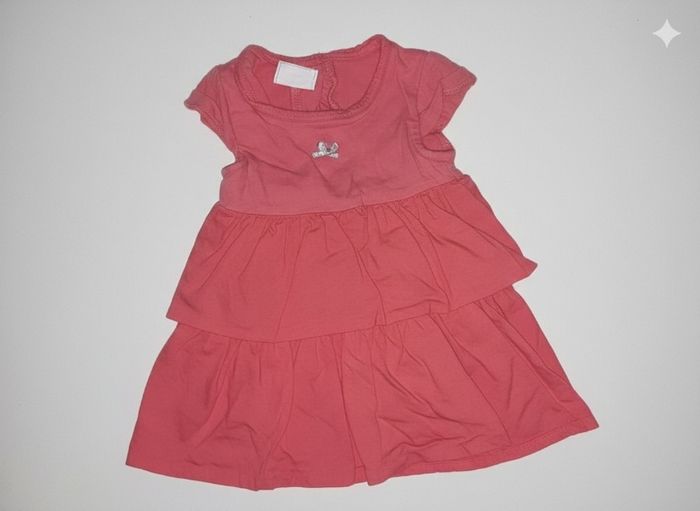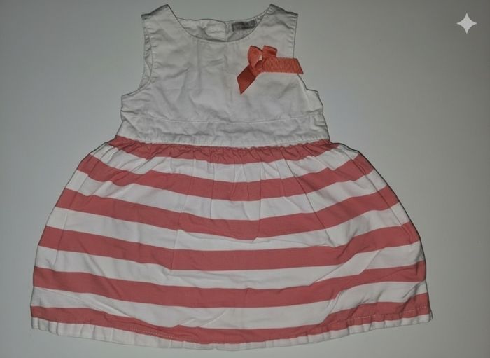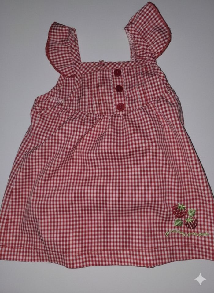 ​Vends un joli lot de 9 pièces pour bébé fille, idéal pour le printemps et l'été. Les vêtements sont en très bon état, issus de diverses marques reconnues. ​Le lot comprend : ​1 Robe chasuble mauve Disney avec broderie Winnie l'Ourson et Porcinet. ​1 Robe à carreaux vichy rouge et blanc avec broderie fraises (Petites Canailles). ​1 Robe en jean bleu léger avec détails volantés et petits boutons. ​1 Robe bicolore beige et rouge avec motif éléphant (Marque : Sucre d'Orge). ​1 Robe rose pâle en velours milleraies avec broderie fleurie délicate. ​1 Robe corail à volants avec petit nœud brillant. ​1 Robe à rayures horizontales corail et blanc avec petit nœud à la taille. ​1 Robe orange vif avec motif zèbre coloré et fleur (Marque : DPAM). ​1 Barboteuse / Combi-short à rayures et motifs poussins (Marque : Orchestra). ​Tailles : Principalement du 6 mois et 9 mois (quelques pièces peuvent tailler jusqu'au 12 mois). ​Matières : Coton majoritaire, doux et confortable pour bébé. ​État : Très bon état général. Pas de taches ni de trous.