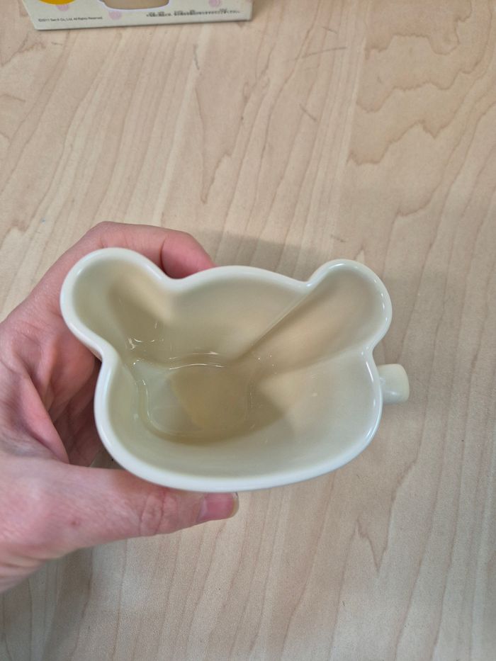 Tasse Rilakkuma Chocolate & Coffee. Porcelaine, environ 8.5 cm de haut. En excellent état avec sa boîte d'origine en état moyen. Vendeur habitué aux envois fragiles. 🌸Les prix sont fixes, car ils intègrent les taxes auxquels les pros sont asujettis. Aucune offre ne sera acceptée qu'il s'agisse d'un lot ou d'un article à l'unité, merci. 🌸N'hésitez pas à vérifier la disponibilité de l'article avant de procéder à l'achat.