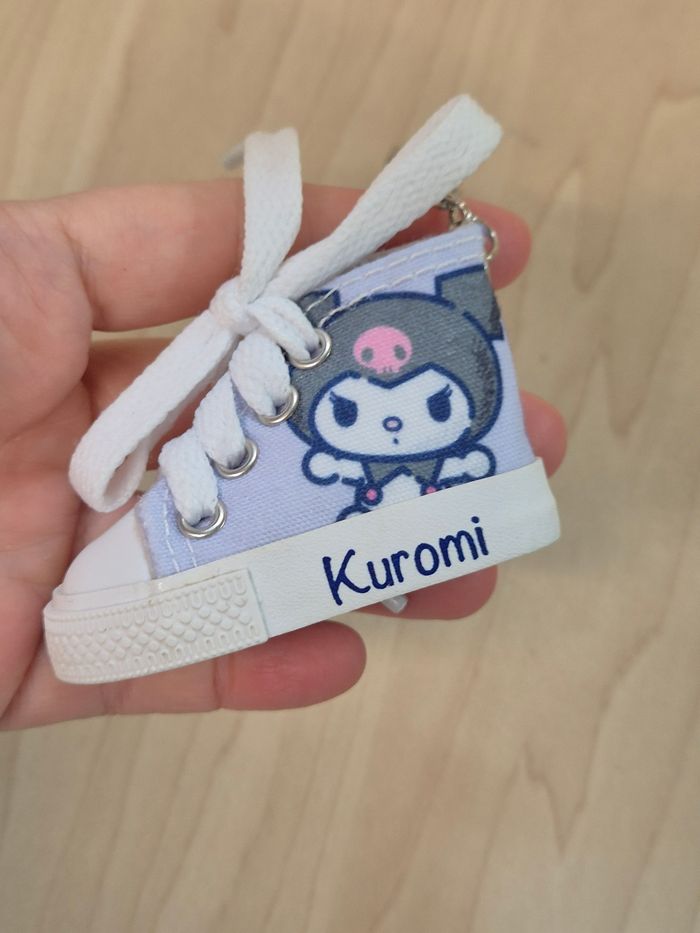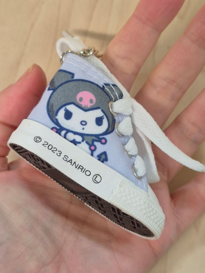 Porte-clefs Sanrio Sneaker/basket : Kuromi. Plastique et polyester, environ 8 x 5 cm. En excellent état. 🌸Les prix sont fixes, car ils intègrent les taxes auxquels les pros sont asujettis. Aucune offre ne sera acceptée qu'il s'agisse d'un lot ou d'un article à l'unité, merci. 🌸N'hésitez pas à vérifier la disponibilité de l'article avant de procéder à l'achat.