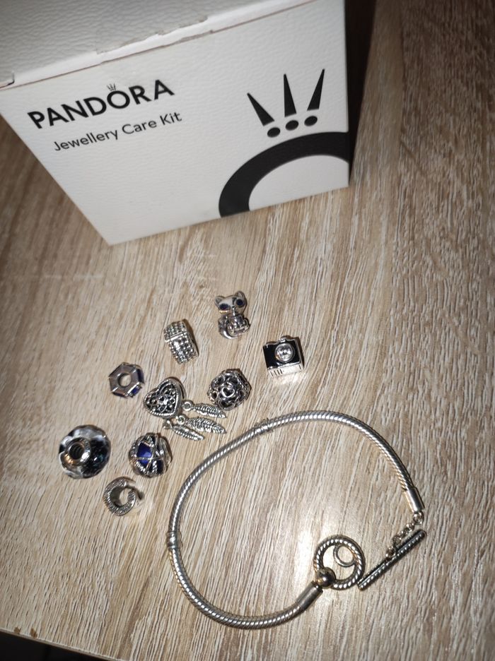 Lot Pandora bracelet + charms + chaîne de sécurité + kit de nettoyage - photo numéro 1
