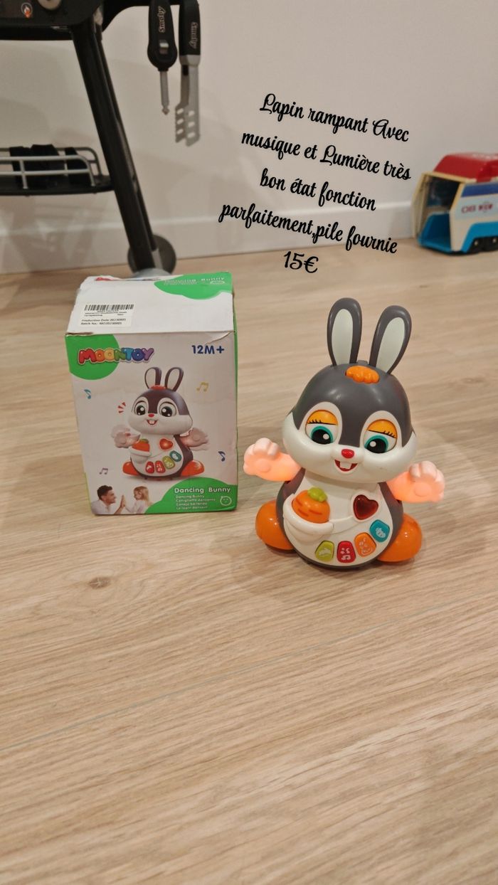 Lapin rampant Avec musique et Lumière très bon état, fonction parfaitement ,je laisse les piles , avec ça boîte d'origine envoie rapide Le jour même ou le lendemain En forme de lapin mignon, le jouet rampant MOONTOY peut cligner des yeux lorsqu'il bouge, battre des ailes et jouer de la musique, ce qui suscitera un grand intérêt chez les bébés. Les bébés s'immergeront dans le monde d'eux-mêmes et du jouet musical lapin en mouvement, bougeant ses membres au rythme de la musique comme s'il dansait tandis que les rires remplissaient la pièce. Fabriqué en matériau ABS incassable, sans BPA, avec des bords arrondis et lisses, sans danger pour les tout-petits. Mouvement universel, mouvement à 360 degrés dans n'importe quelle direction, évitement précis des obstacles en cas d'obstacles. Ce jouet d'apprentissage à lumière douce pour bébés joue une variété de musique apaisante pour aider votre tout-petit à s'endormir. Le jouet Rabbit Crawler MOONTOY est parfait pour que les bébés développent leur motricité globale et apprennent à contrôler les gros muscles pour permettre la marche, la course, le saut et l'équilibre du corps tout en jouant. Le jouet rampant lapin est une bonne aide pour que les bébés exercent les muscles de leur corps et relèvent la tête, un bon jouet interactif pour encourager les bébés à ramper, un bon jouet pour stimuler les bébés à marcher et à courir, il joue un rôle éducatif et interactif, apportant beaucoup de joie pour les bébés.