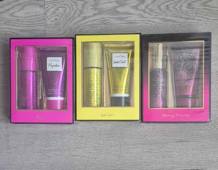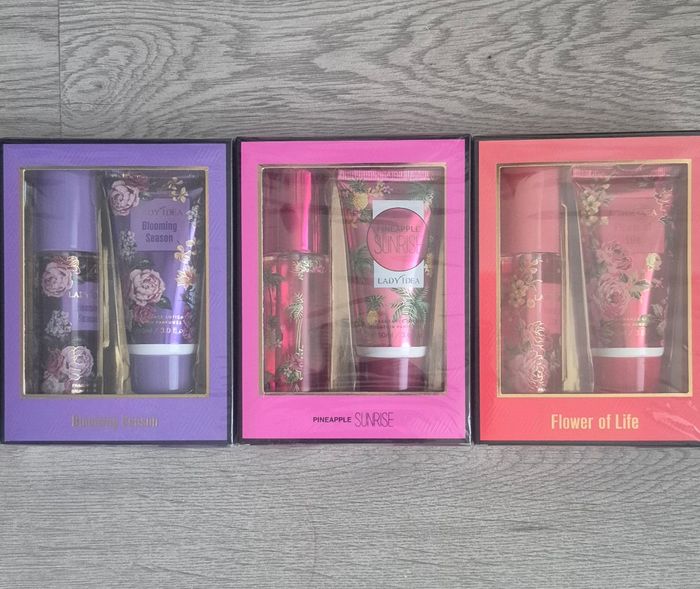 Bonjour ! Je vends de jolis coffrets duo tout neufs, parfaits pour offrir. ​Chaque coffret contient : ✨ 1 Brume parfumée pour une touche de fraîcheur. ✨ 1 Lait corps parfumé assorti pour une peau toute douce. Plusieurs senteurs disponibles selon vos envies :