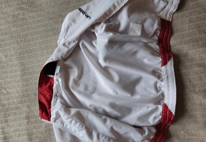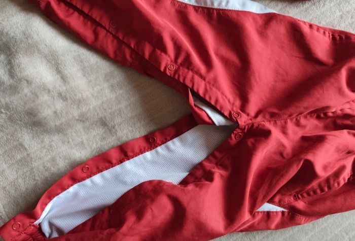Vends cette ensemble Umbro. Avec une veste et un pantalon, il y a des tâches derrière sur la veste et devant. (Voir photo) Le pantalon à des poches et s'attache avec des pressions et la veste à des poches aussi et s'attache avec un zip.