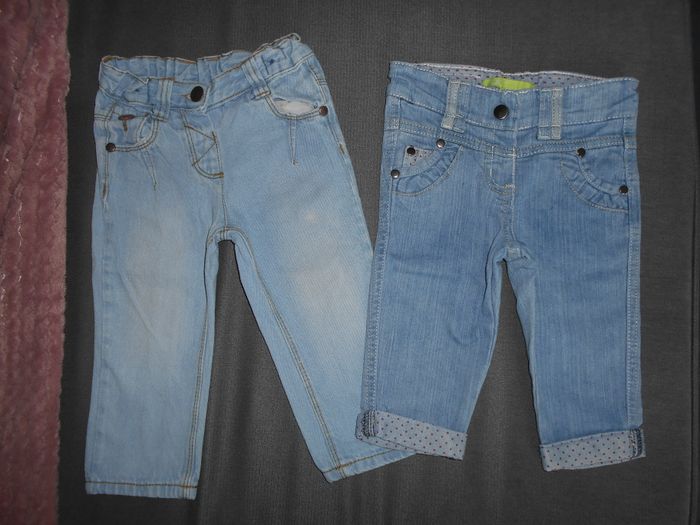 Vends ces pantalons, taille: 9 mois pour celui de droite et 9/12 mois pour celui de gauche, en trés bon état. Frais de vente et de port à l'unité. 0,50 EURO piéce
