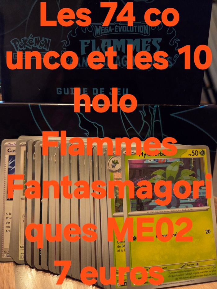 Vends les 74 co unco et les 1 holos de la série Flammes Fantasmagoriques ME02. Envoi rapide et soigné.