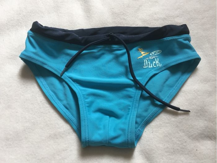 vends ce maillot de bain type slip de Bain pour garçon taille 8 ans couleur bleue Profondeur de fesse 19 cm largeur à la taille 59 cm 1 euro Mes autres annonces de vêtements pour garçon de 7 à 8 ans #lma42garcon8 #lma42garcon7 #lma42sport