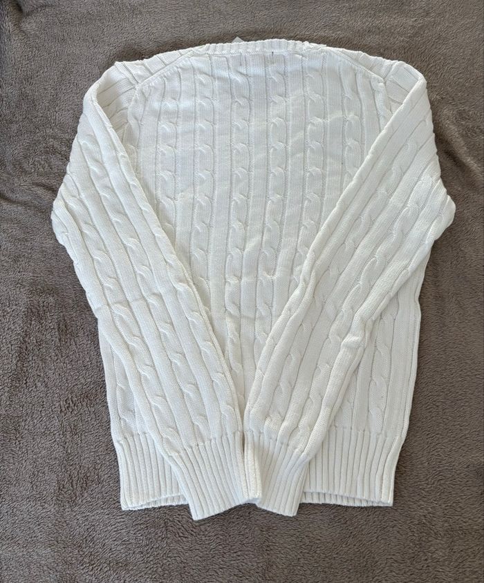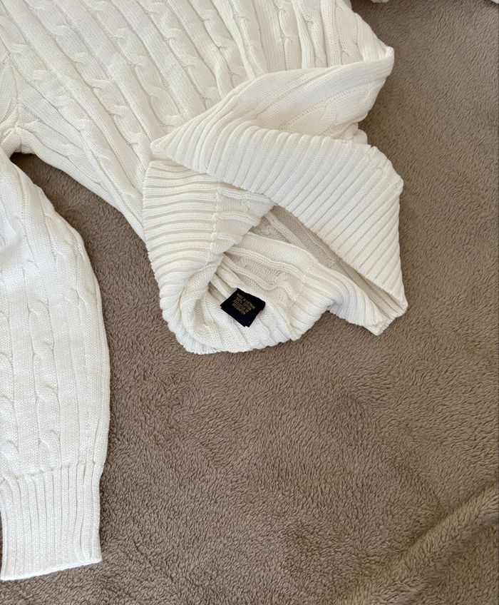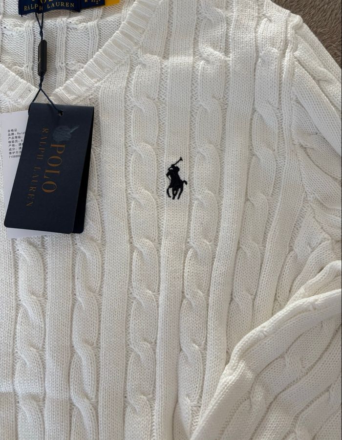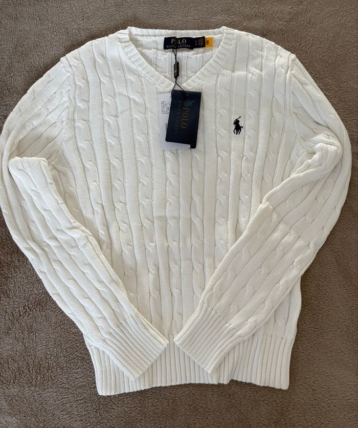 Pull femme Polo Ralph Lauren – Taille M – Neuf avec étiquette Magnifique pull femme Polo Ralph Lauren en taille M, entièrement neuf avec étiquette. Modèle en maille torsadée (cable knit) de couleur blanc , coupe classique et élégante. Logo Polo brodé sur la poitrine. Parfait pour un look chic et intemporel, idéal en toute saison. N’hésitez pas si vous souhaitez une version plus courte, plus commerciale ou plus détaillée !