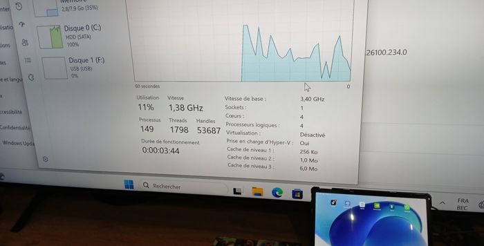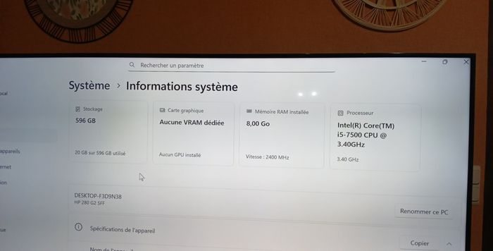 tour pc hp i5 7500 4 coeur4 tete 8go ram ddr4 640go dique dur avec win 11