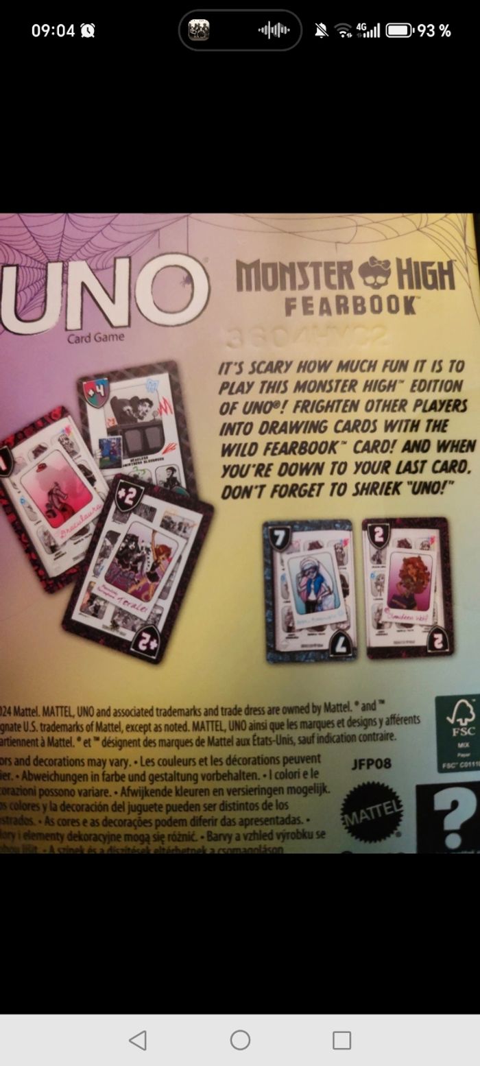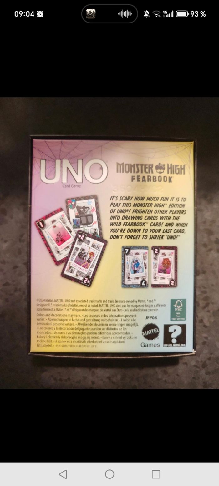 ✨ Jeu de cartes UNO en édition spéciale, célébrant les 15 ans de Monster High. - État : neuf, jamais ouvert, boîte scellée. - Édition Fandom exclusive Mattel, vendue uniquement en ligne. - Contenu : 112 cartes illustrées avec les personnages emblématiques du lycée de New Salem. - Carte spéciale WILD “Fearbook” : règle unique ajoutant une touche monstrueusement fun. - Packaging thématique : boîte illustrée, parfaite pour collection ou cadeau geek. 💎 Rare en Europe dans cet état impeccable. 🎁 Parfait pour les fans de Monster High, les collectionneurs et les amateurs de jeux stylés. #UNO #MonsterHigh #Fearbook #Mattel #JeuDeCartes #Collector #EditionLimitée #MonsterHigh15Ans #EuropeSale