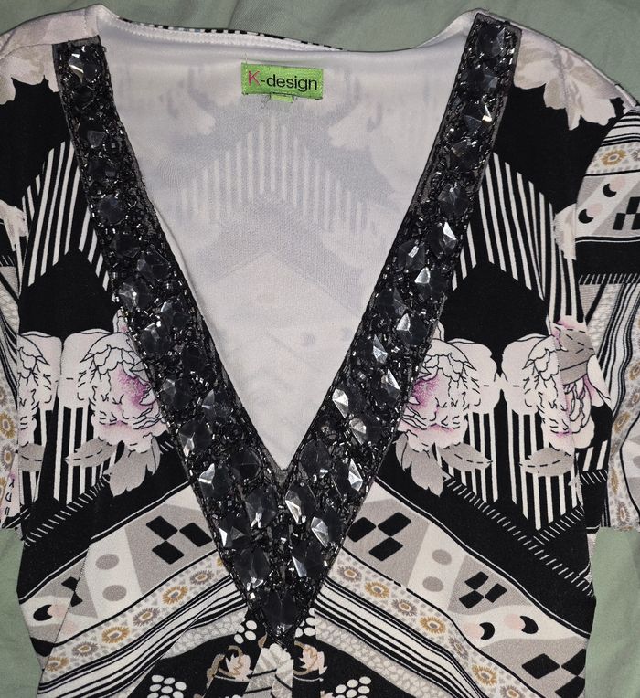 Robe a manche 3/4, col en V avec gros strass. Intérieur doublé. Marque K-design en taille XS. Remises sur lots activé ✅️ De plus, moins de frais de livraison 🪙📦 Envois rapide et soigné ! 🚚
