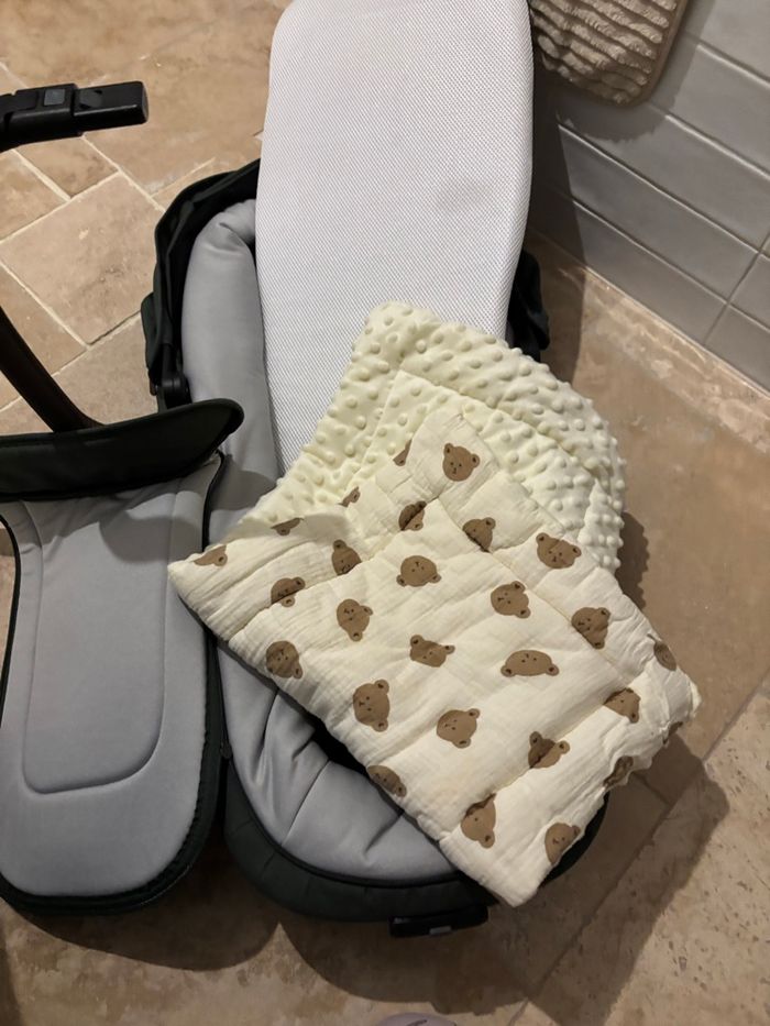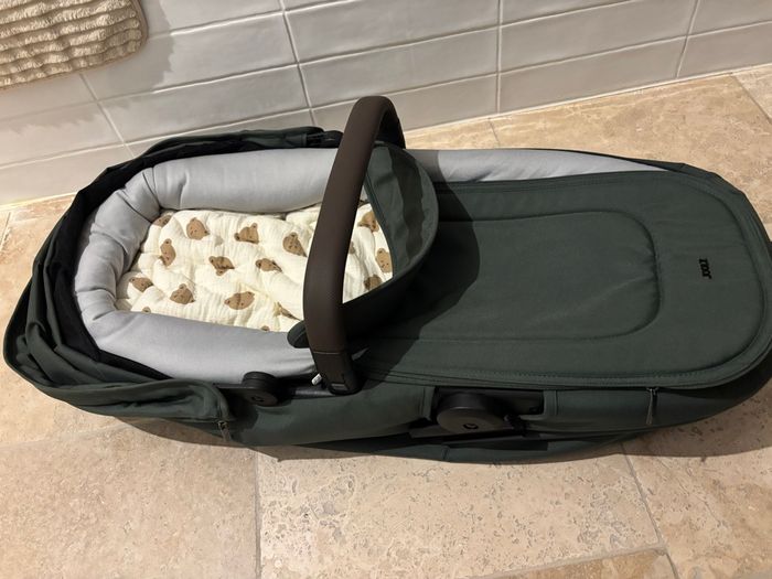 Nacelle pour poussette Joolz aer + Très bon état, matelas fourni avec et je laisse la protection en ourson. C’est une nacelle pliante avec la poussette, ce qui fait un gain de place énorme. je l’ai très peu utilisé.