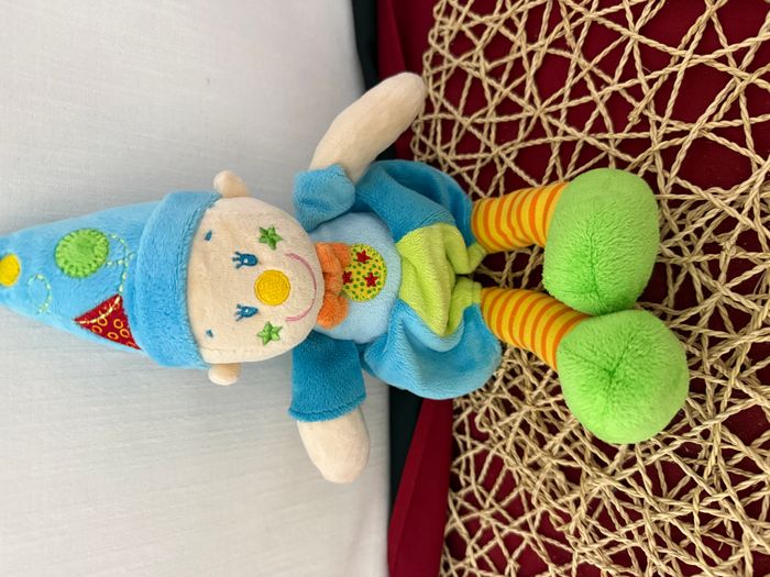 Nicotoy Doudou Clown Lutin Orange Bleu Vert Jaune Rouge Etoile Bonnet - photo numéro 1