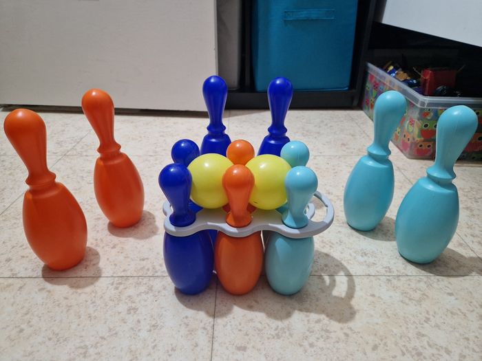 Je vends ce jeu de quilles coloré et ludique. - Type de produit : Jeu de quilles - Couleurs : Bleu, orange, jaune, turquoise - Composition du lot : 12 quilles et 2 boules (1 lot complet avec son rangement + 6 quilles supplémentaires plus grandes pour plus de fun! Très bon état. Un jeu idéal pour les enfants de 3 à 6 ans ! N'hésitez pas à me contacter pour plus d'informations.