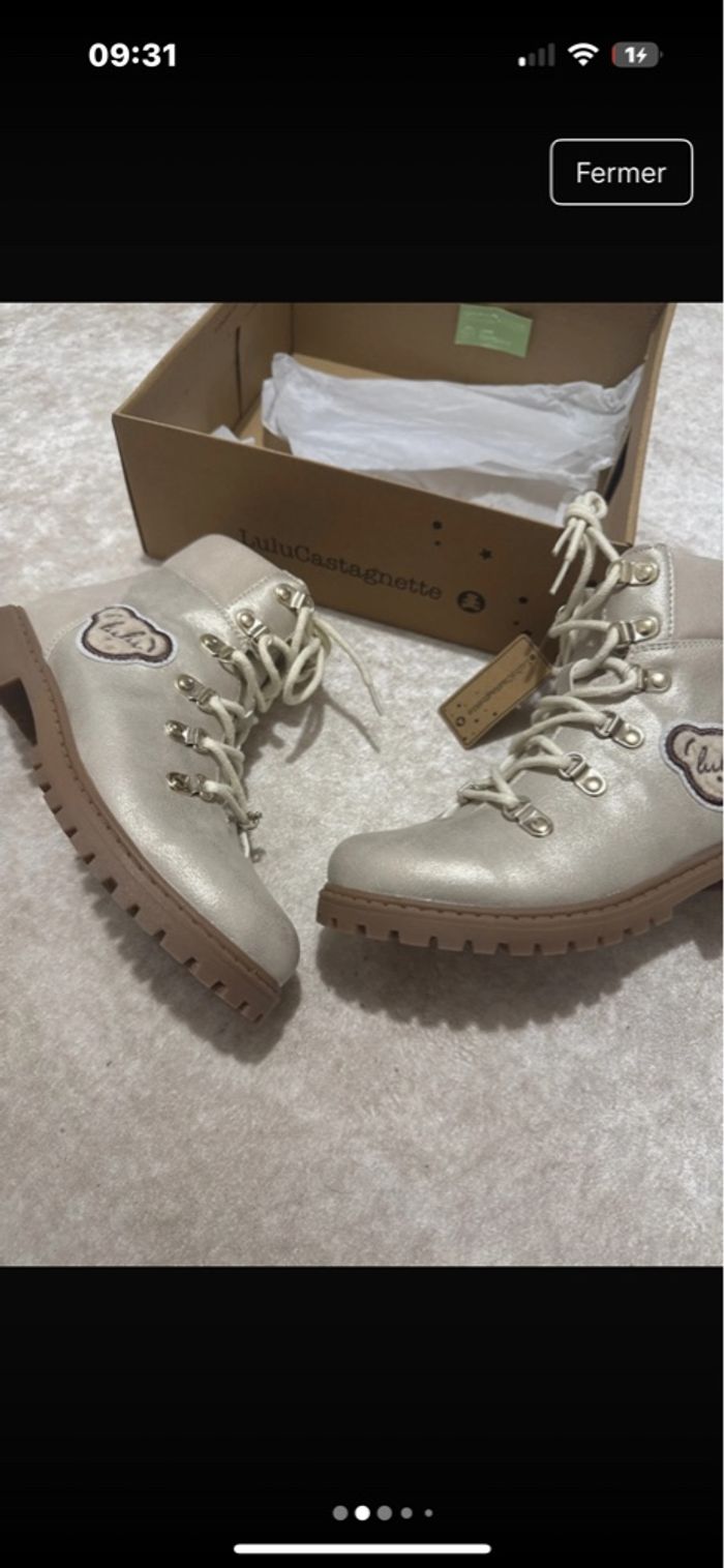 Magnifique chaussure montante à lacet bottine bottillon lulu castagnette Gold taille 33 Neuf avec étiquette