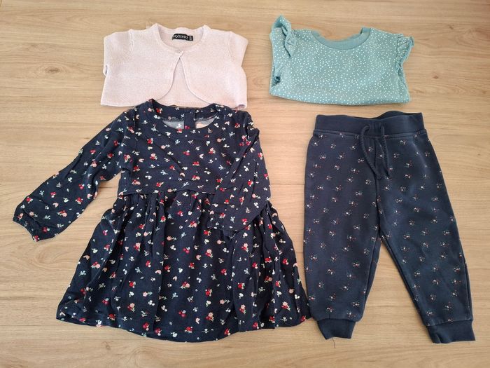 Lot de vêtements 1 sweat, 1 robe et 1 pantalon molleton Primark 9/12 mois 80cm 1 gilet boléro rose pailleté in extenso 80 cm