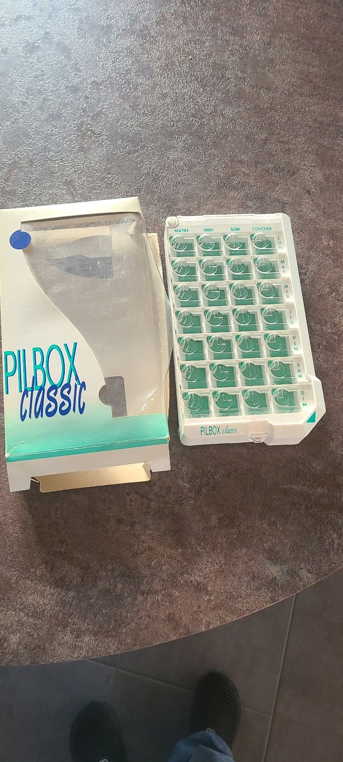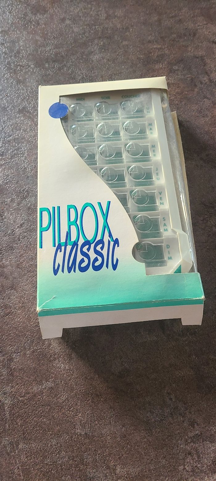 Vend pilulier neuf jamais servi l'emballage est légèrement abîmé Je vend plusieurs articles dans mon dressing
