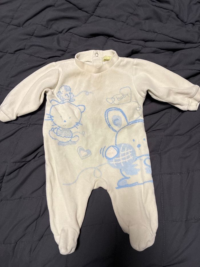Pyjama jaune pale dessin de chat et lapin fermeture par pression dans le dos