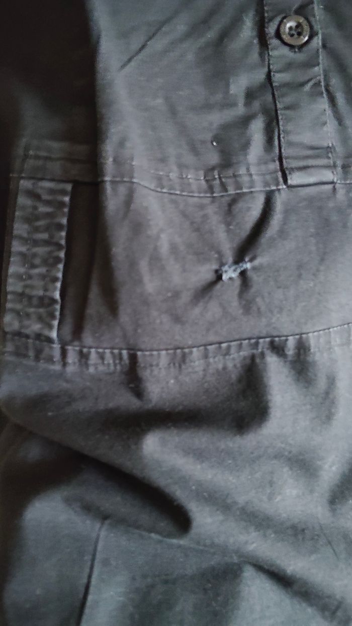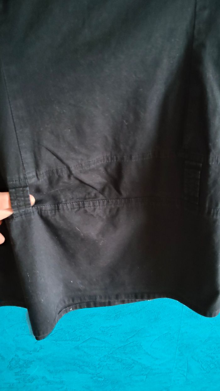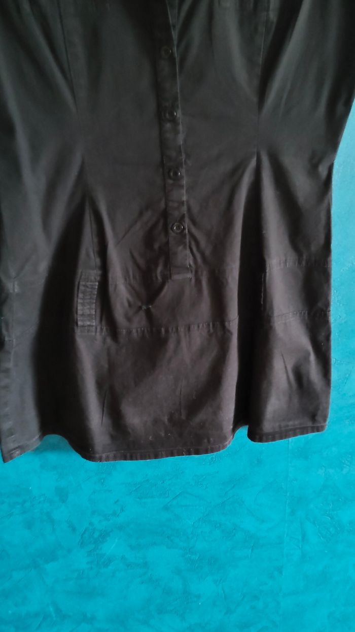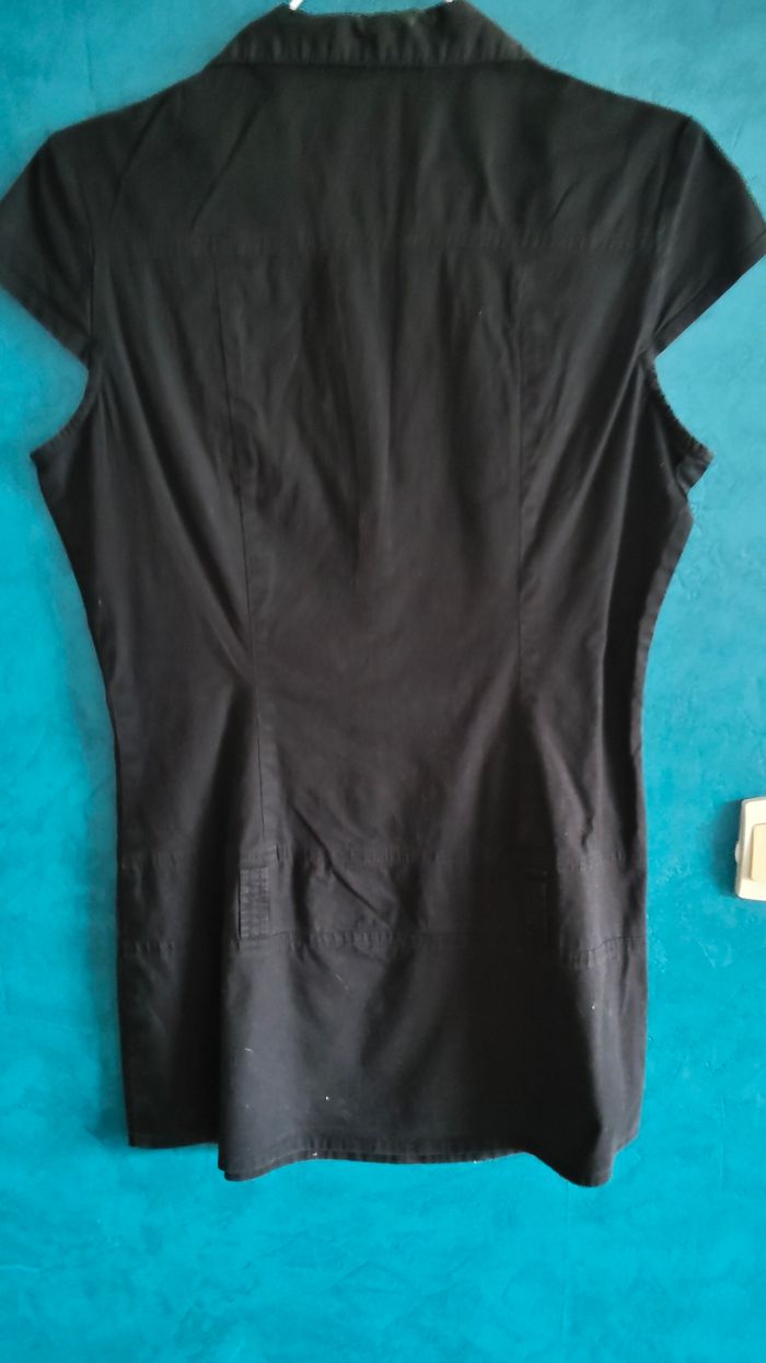 Chemise tunique avec possibilité de mettre une ceinture (non fournis), un point de couture a été fait sous la ceinture (cf.photo). La tunique est noir, les reflets sont dû à la photo mais avec le lavage le noir est un peu passé. Raison pour laquelle je la met en bon état. Longueur totale prise au plus haut : 78 cm Pas de tâche, pas de trou (hormis la point de couture) #thethe27femme40