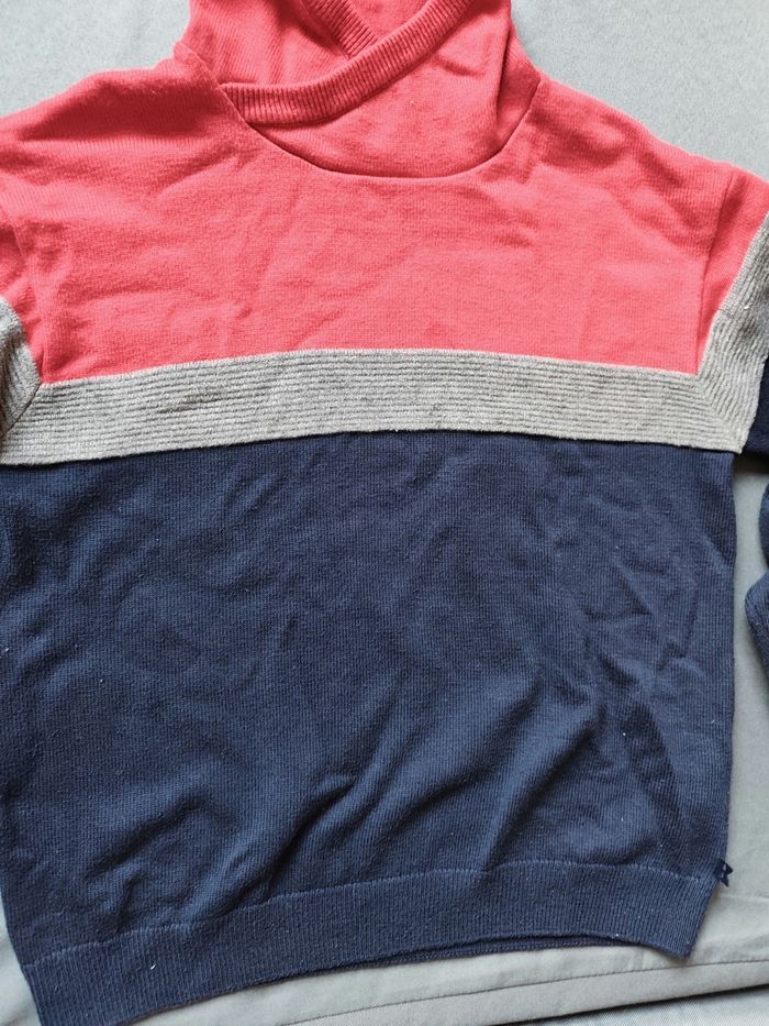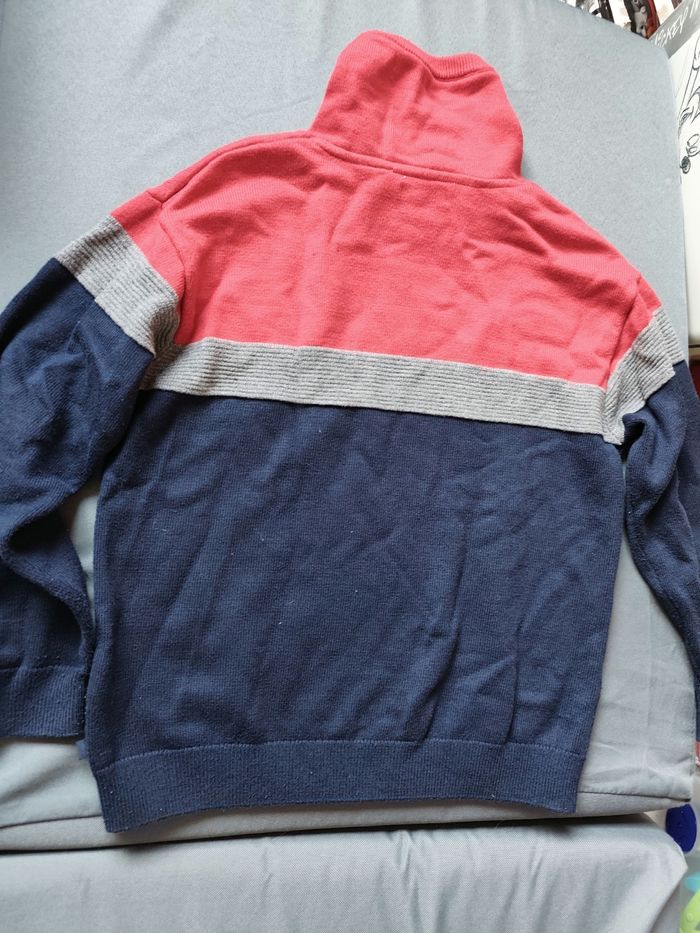 Joli pull tricolore (rouge, gris chiné et bleu marine) avec un col montant croisé original. ​🔸 Marque : Okaïdi 🔸 Taille : 10 ans (140 cm) 🔸 État : Très bon état